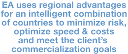 - Clinical development requires that country choice is based on patient availability, site experience, study start-up time, and country risk. EA has long experience and relationship with investigators in fast recruiting geographies of the world.