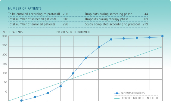 Clinical trial in oncology (solid tumour): 20% more patients in half the time envisaged
